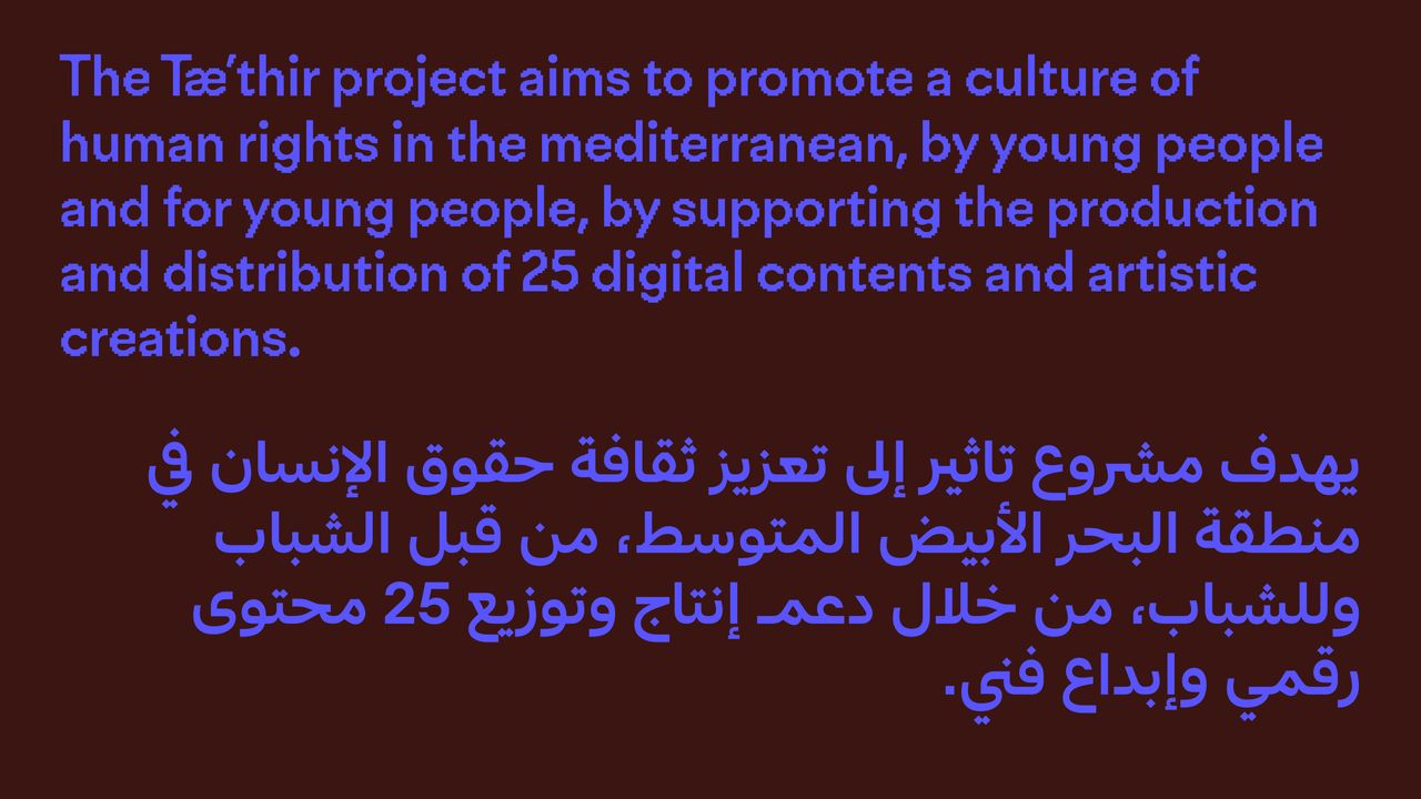 Un nouveau projet qui aborde les questions de droits humains et de libertés selon une perspective culturelle et créative innovante, porté par Réseau Euromed France, la Ligue de l’enseignement - Fédération des Bouches-du-Rhône, The Cairo Institute for Human Rights Studies (CIHRS) et Instants Vidéo numériques et poétiques. Le projet Tæ’thir, “influence” en arabe, vise à promouvoir une culture des droits humains dans les pays méditerranéens en s’appuyant sur des pratiques numériques et artistiques influentes et innovantes.